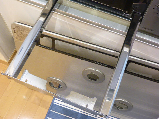 以前のガスコンロは、吹きこぼれが内部に漏れ出したり、グリルの排気口から落ちたものが手の届かない所に入ってしまい大変な汚れになっていたので、グリレはどうなっているか見てみました。